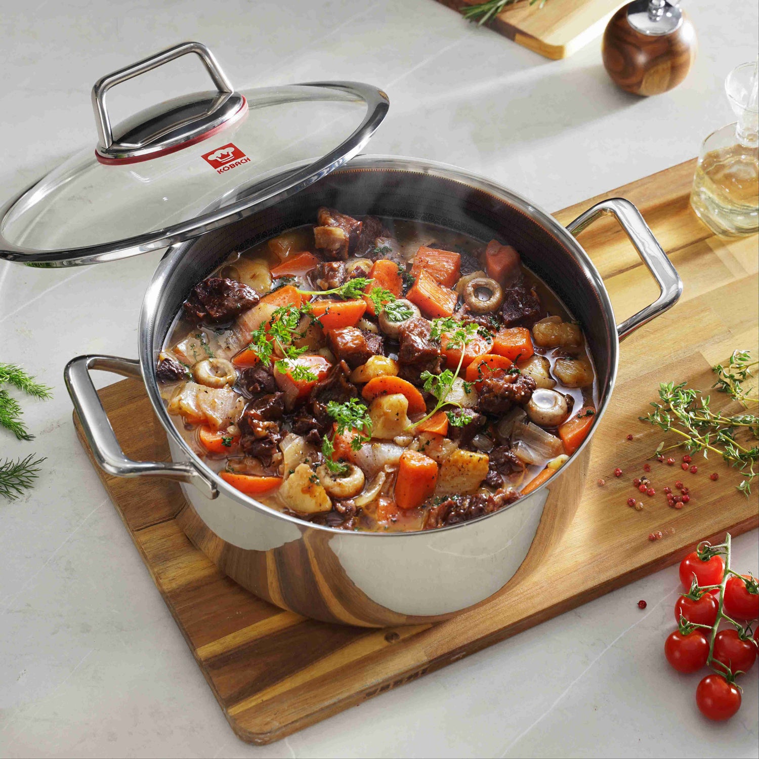 ✅ Tempered glass lids with steam vents, oven-safe up to 400°F.