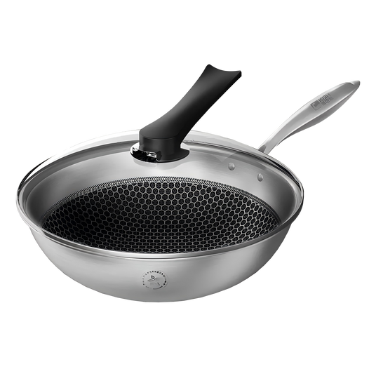 From a chemical perspective, 316L stainless steel contains molybdenum, which significantly enhances corrosion resistance and high-temperature durability compared to 304 stainless steel. Additionally, a higher nickel content makes the material more stable, ensuring greater durability when used in cookware. As a result, the new-generation honeycomb pan delivers better heat conductivity and reduced oil smoke during cooking.